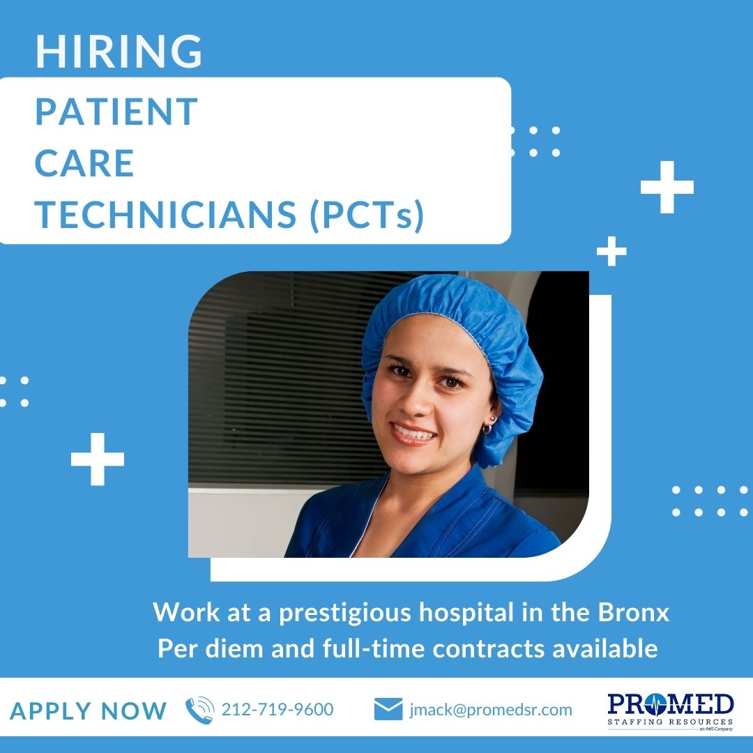 Promed Staffing Resources On Twitter We Are Hiring Full Time And Part Time Patientcaretechnicians Pcts For A Prestigious Medical Facility In The Bronx Apply Now Start As Early As Next Week Pct Patientcaretech